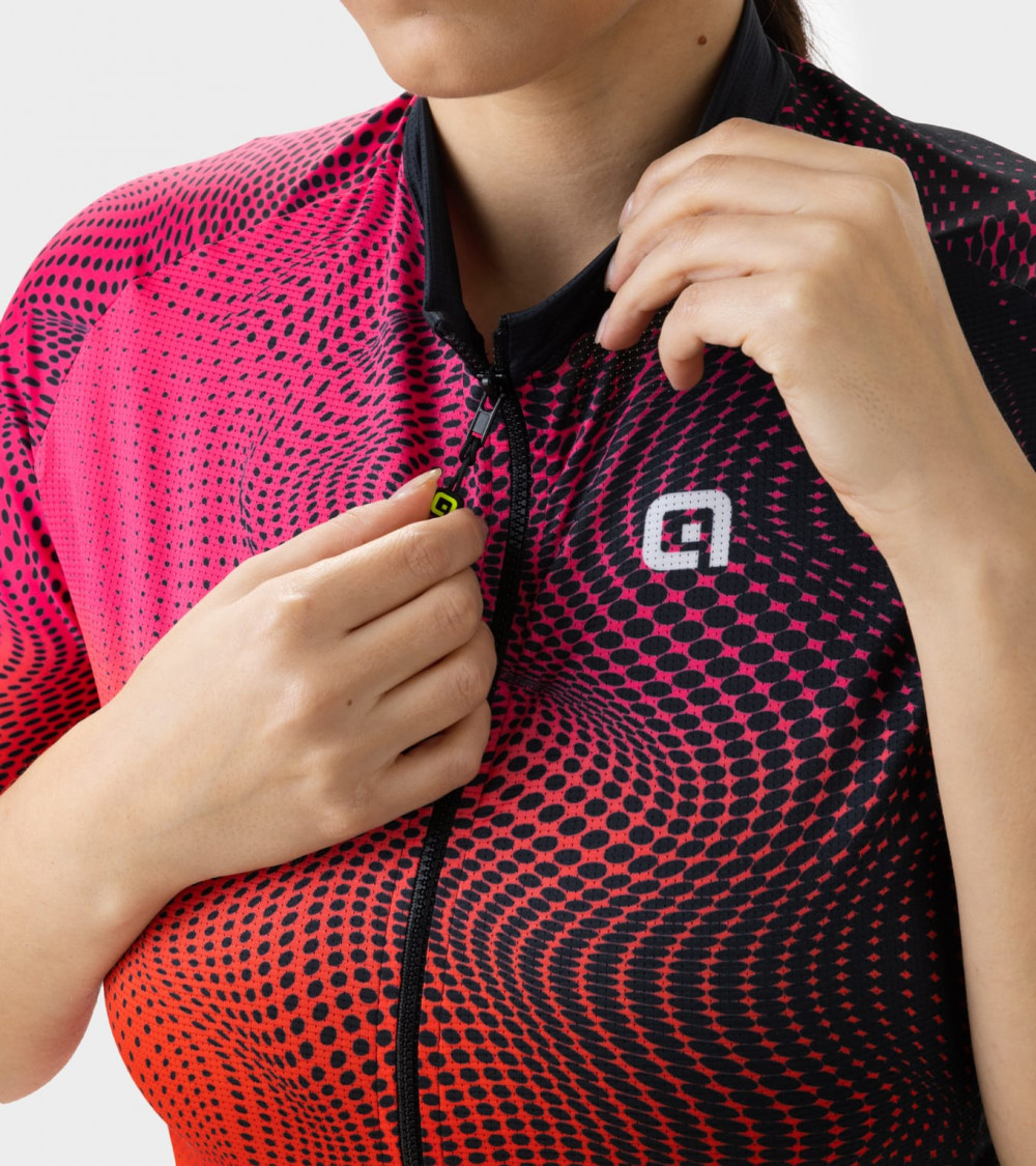 Popis:Stylový dámský dres Alé z lehkého materiálu Microforato pro skvělou ventilaci v horku. Střih Body mapping pro přizpůsobení tvaru těla, elastické rukávy s Raw-cut zakončením a silikonový lem v pase pro stabilitu dresu. Kapsový díl na zádech.