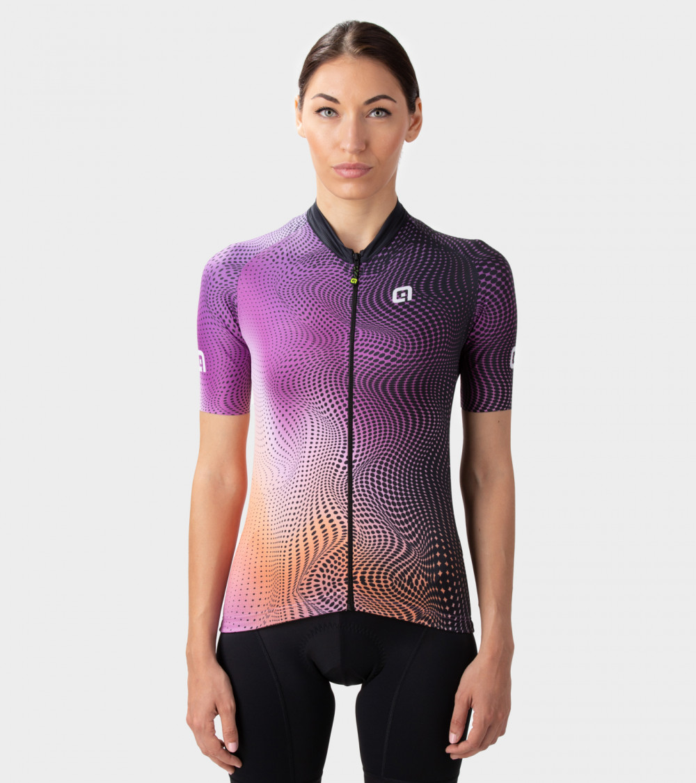 Stylový dámský dres Alé z lehkého materiálu Microforato pro skvělou ventilaci v horku. Střih Body mapping pro přizpůsobení tvaru těla, elastické rukávy s Raw-cut zakončením a silikonový lem v pase pro stabilitu dresu. Kapsový díl na zádech.