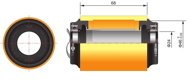 Redukční středové složení určené pro siniční rámy PF-30 (68x46mm), pomocou ktorého je možné použit silniční kliky 24mm osou. Hmotnosť 110g.