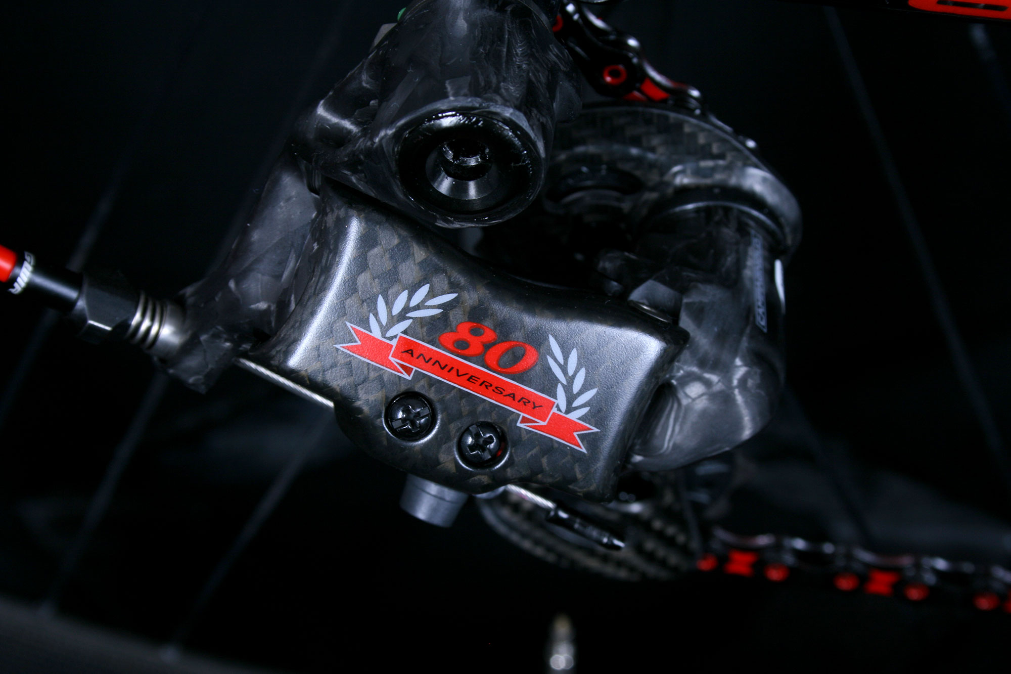 Popis:PINARELLO DOGMA - komponenty CAMAPGNOLO SUPER RECORD 80 let limited edition. zapletená kola Campagnolo BORA.
